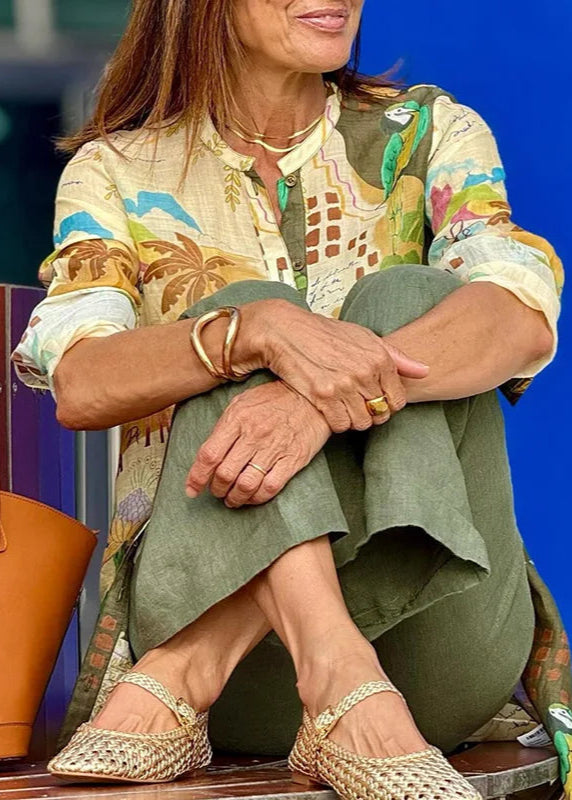 Réalisée en lin léger et doux, cette blouse est agréable sur la peau et idéale pour un déjeuner en terrasse, une journée en ville ou un dîner en bord de mer.